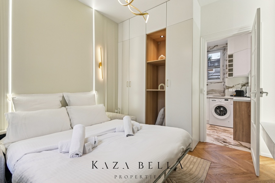The apartment is a true haven of peace. The comfortable bed ensures a restful night's sleep, while the practical storage keeps your belongings neatly organized.