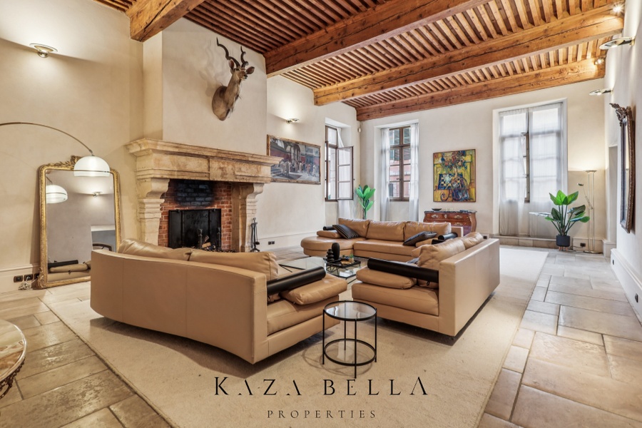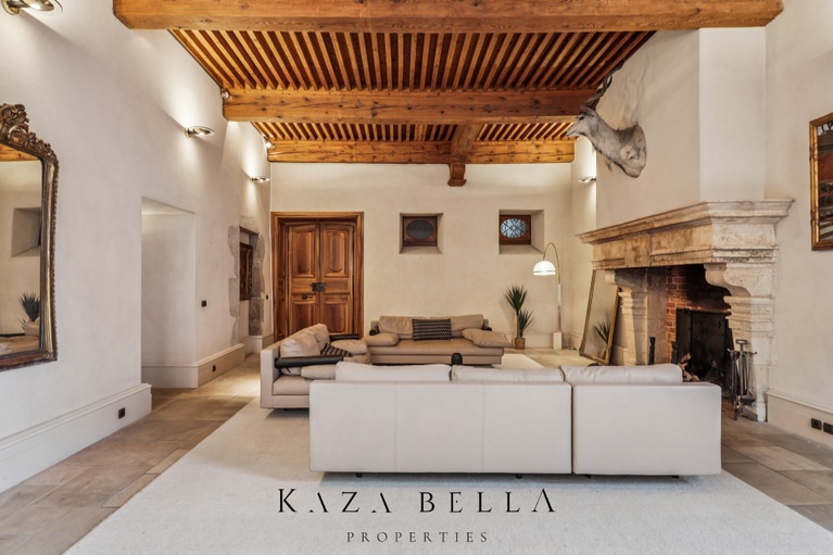 The spectacular proportions, French‑style ceilings, monumental fireplaces, and stone floors attest to the building's heritage character. These features have been meticulously restored to preserve its authenticity while incorporating high‑end contemporary comforts, including underfloor heating throughout.