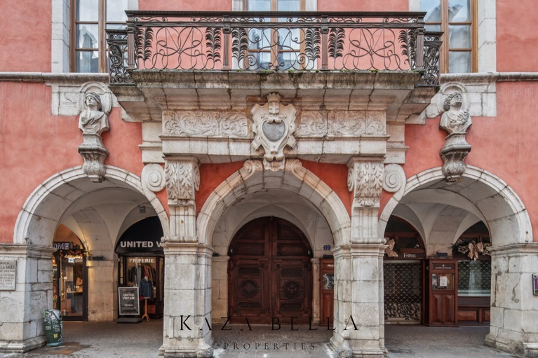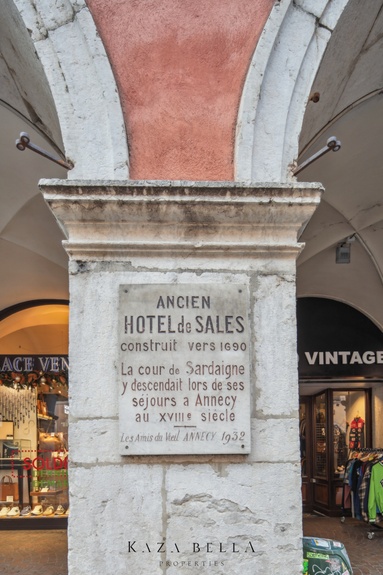 Located on Rue du Pâquier, one of Annecy's most sought‑after addresses, this historic apartment of nearly 250 square meters occupies the former Hôtel de Sales, built around 1690, just steps from the lake.