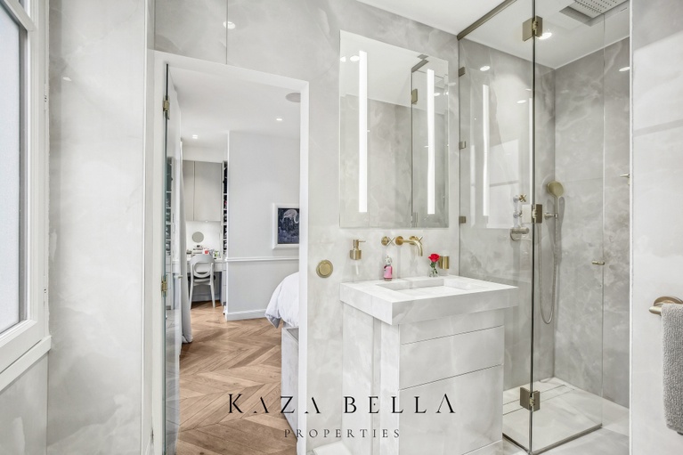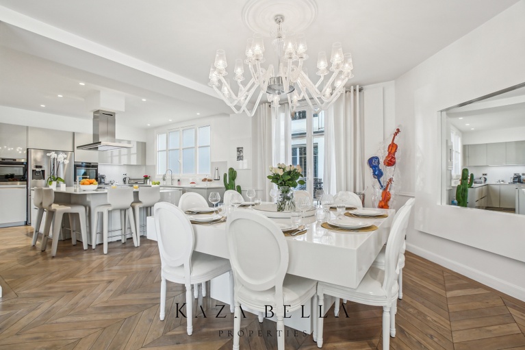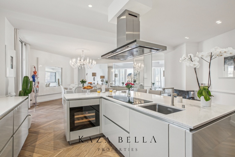 The apartment features four bedrooms, three with en‑suite bathrooms, ensuring comfort and privacy for each of your guests. A fully equipped modern kitchen and a reception room that can accommodate up to 20 people make this the perfect setting for private dinners or events.